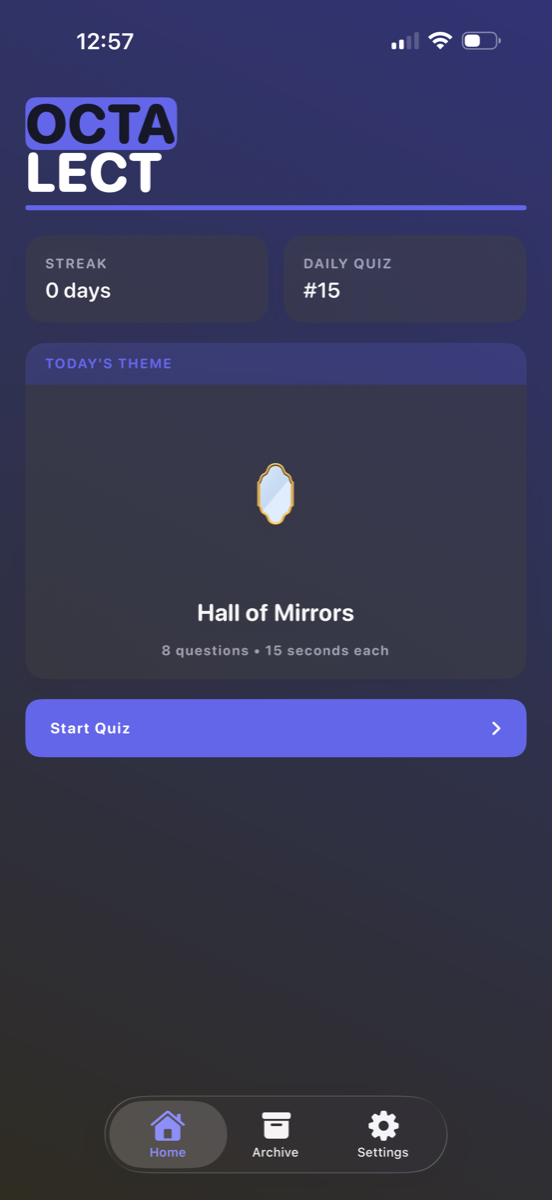 A daily quiz across news, culture, and trivia. Built for the two minutes between everything else.
